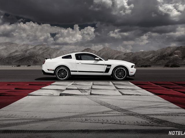 Wallpaper White Ford Mustang in the background of mountains and clouds