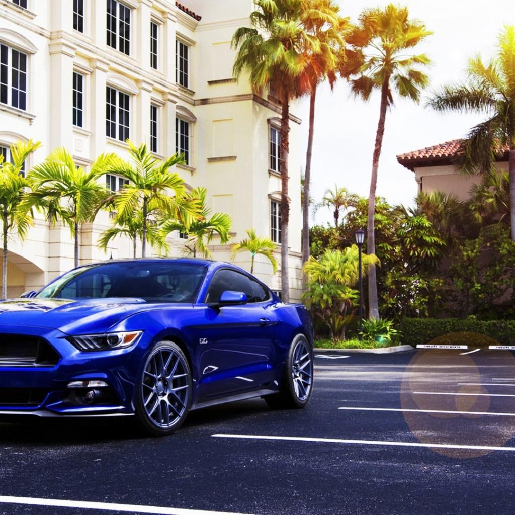 Wallpaper Blue Ford Mustang at the house with palm trees