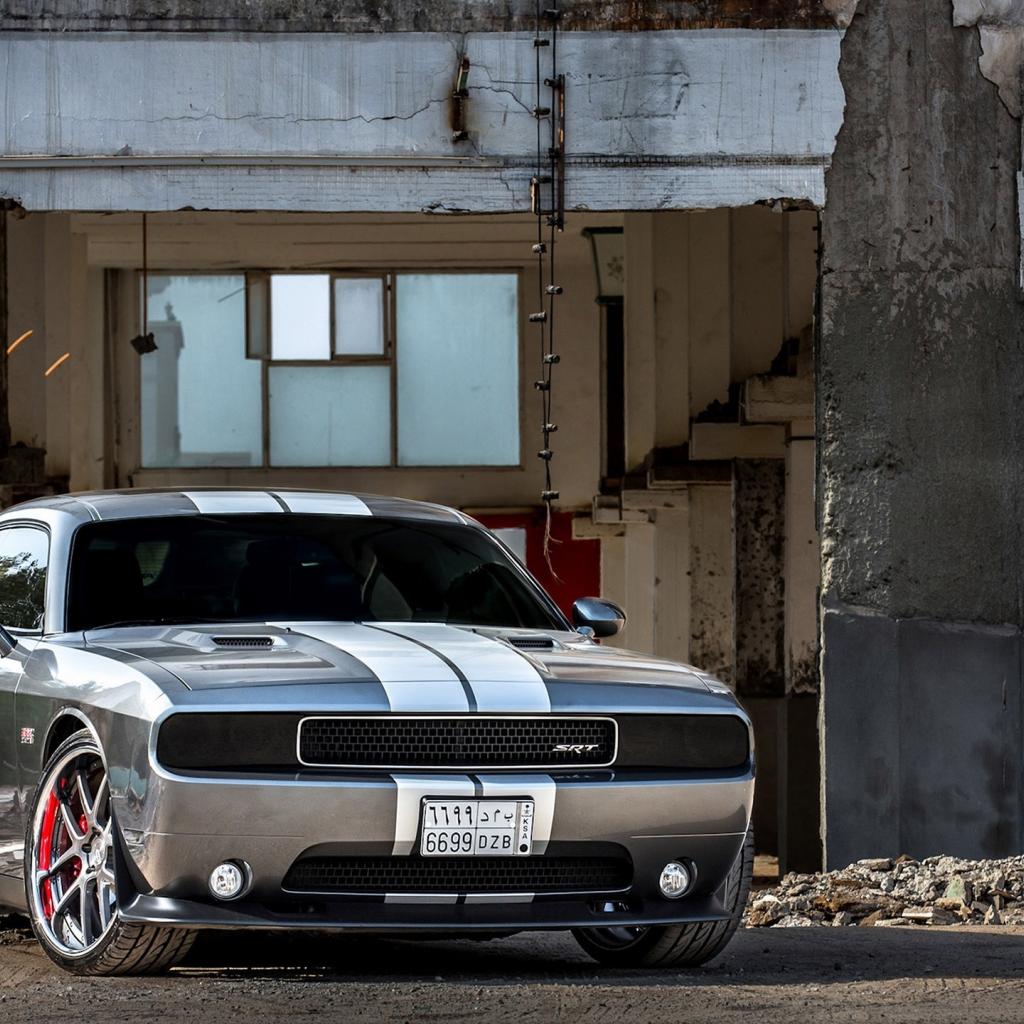Wallpaper Grey Mustang in a ruined house