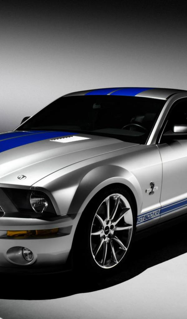 Wallpaper Beautiful blue Ford Mustang on a gray background