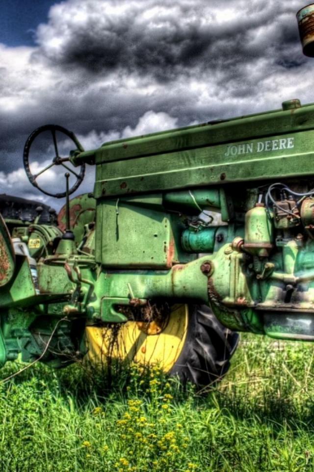 Wallpaper Green tractor in the field