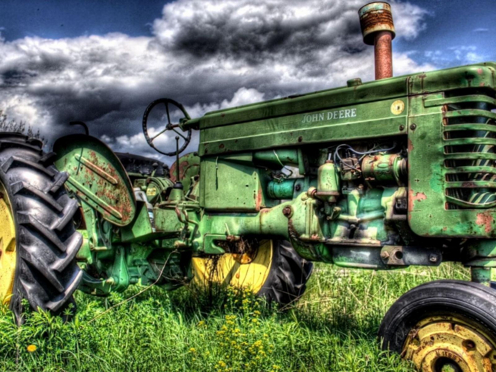 Wallpaper Green tractor in the field