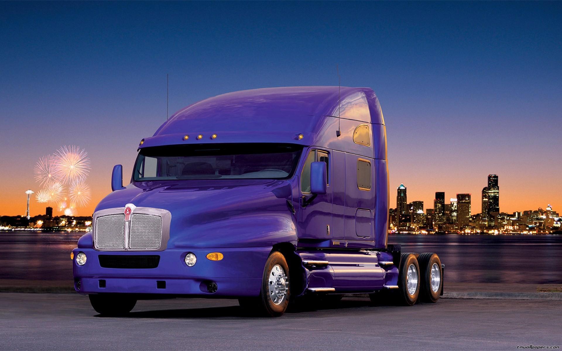 Wallpaper Lilac powerful tractor on the background of the city