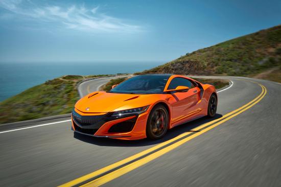Wallpaper Orange car Honda NSX on the track under the blue sky