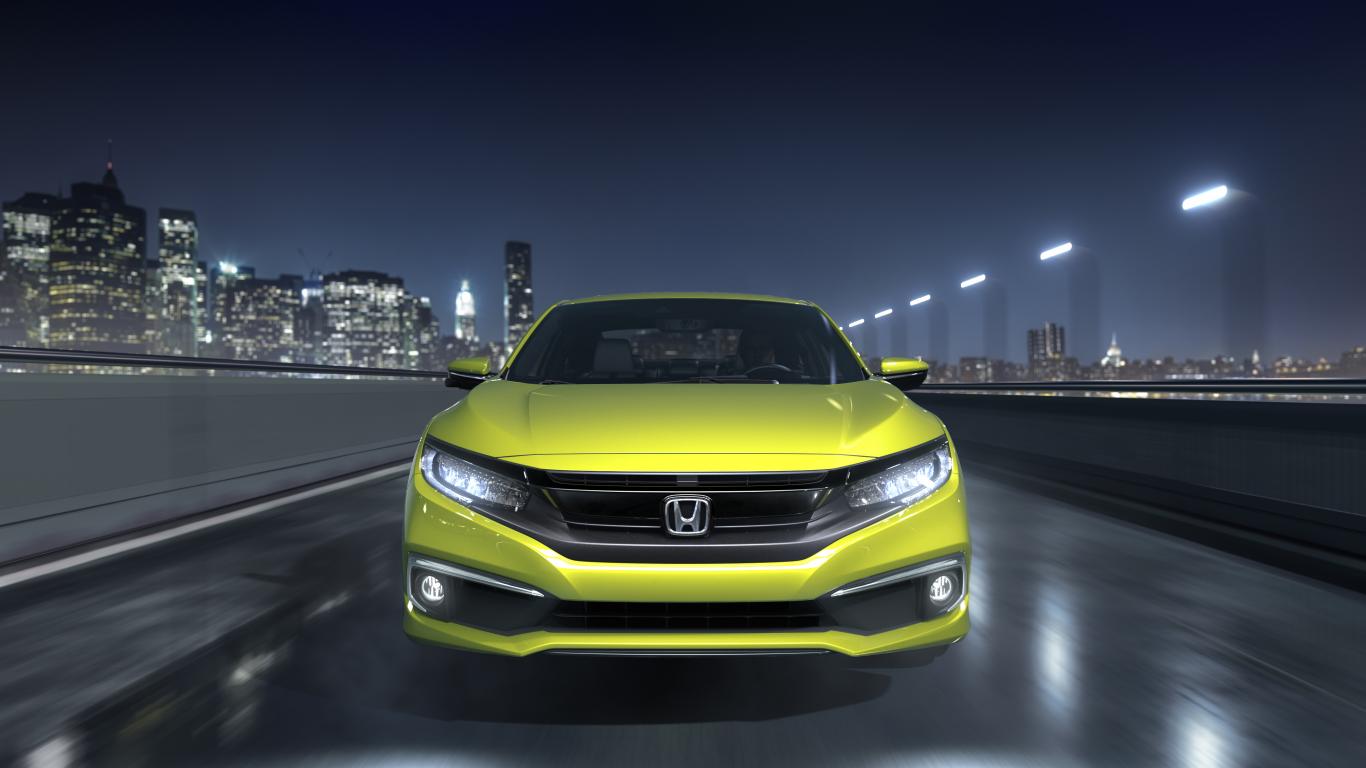 Wallpaper Yellow car Honda Civic, 2019 on the background of the city