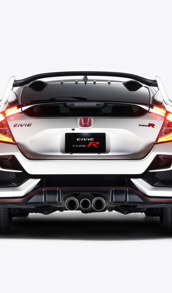 Wallpaper 2020 Honda Civic Type R car rear view on a white background