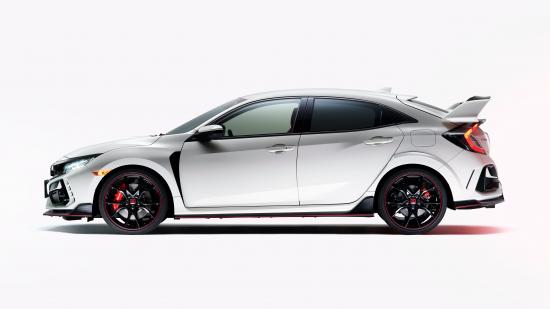 Wallpaper 2020 Honda Civic Type R car side view on a white background