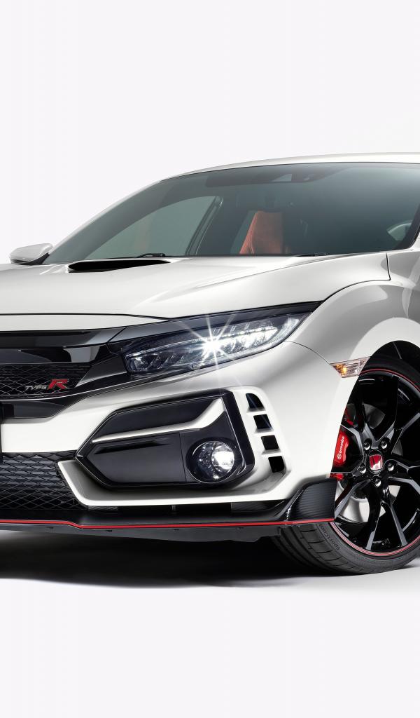 Wallpaper Silver car Honda Civic Type R 2020 on a white background
