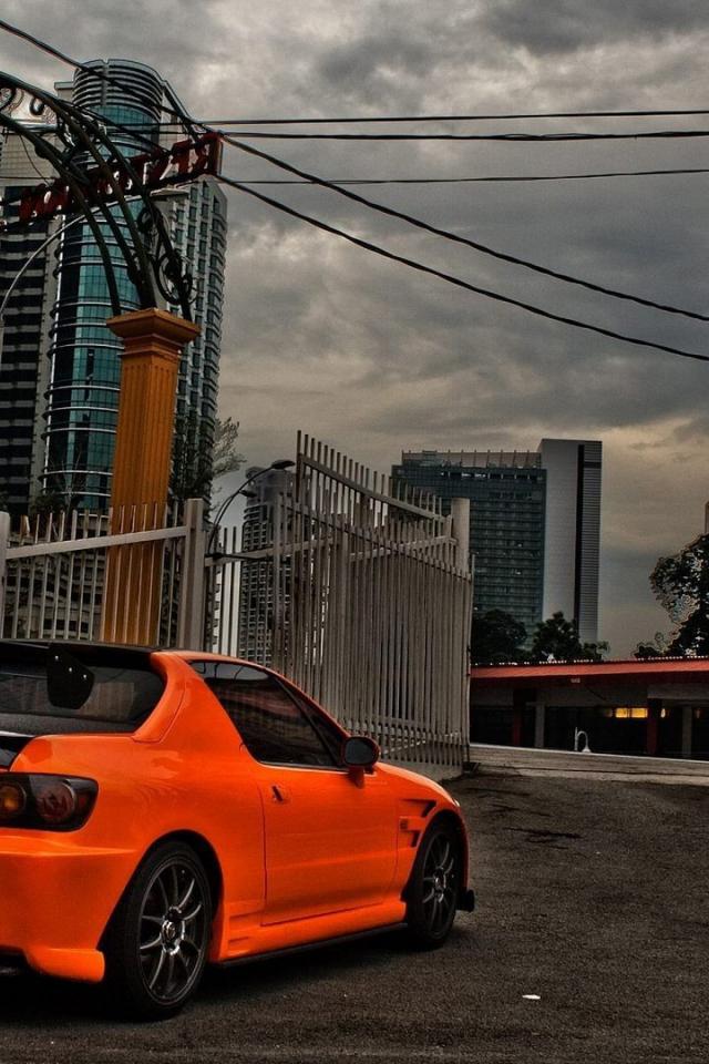 Wallpaper Orange Honda parked in the city