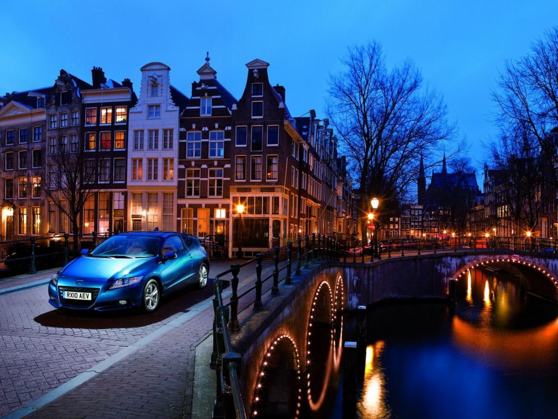 Wallpaper Honda-CR-Z in an evening city