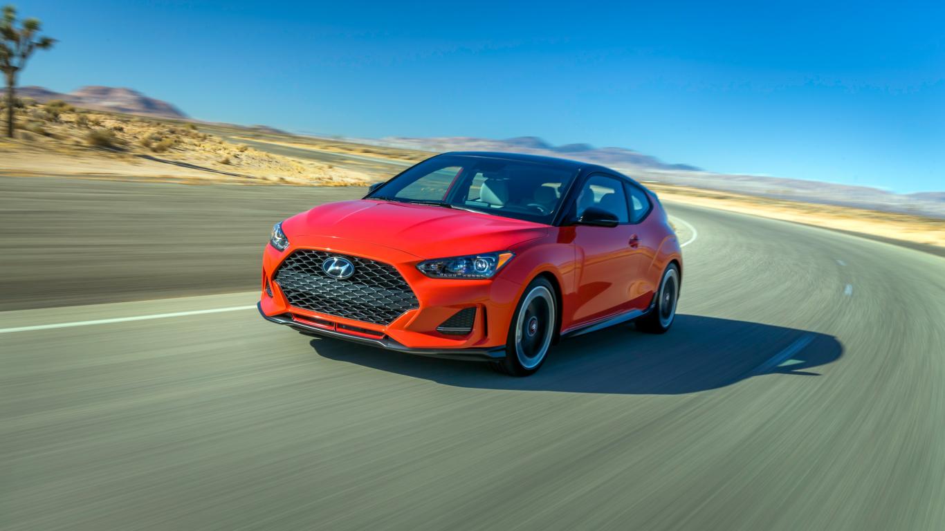 Wallpaper Red car Hyundai Veloster Turbo, 2019 on the road