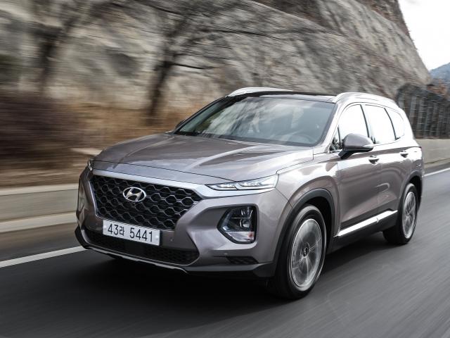 Wallpaper Silver car Hyundai Santa Fe, 2019 on the track