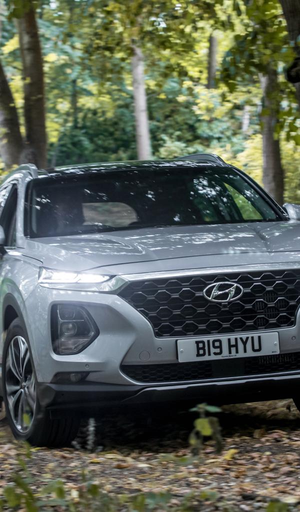 Wallpaper Silver car 2018 Hyundai Santa Fe in the forest