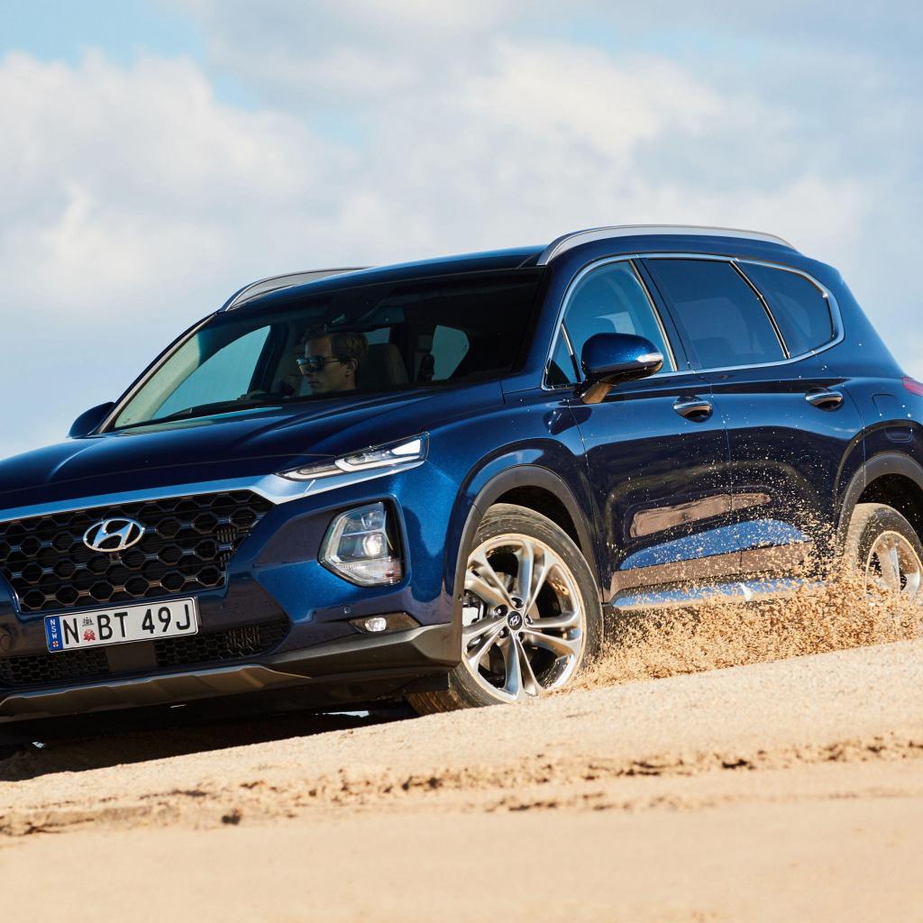 Wallpaper Black 2018 SUV Hyundai Santa Fe in the sand
