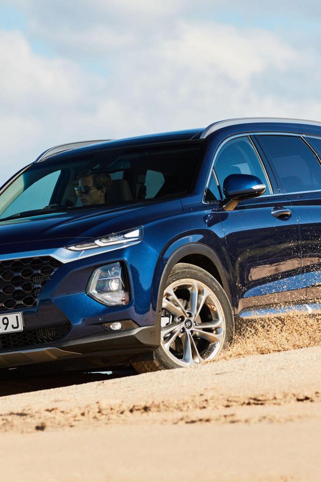 Wallpaper Black 2018 SUV Hyundai Santa Fe in the sand