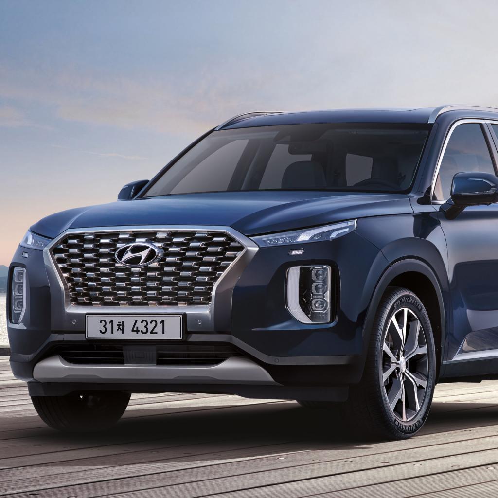 Wallpaper Blue car Hyundai Palisade 2020 on the bridge