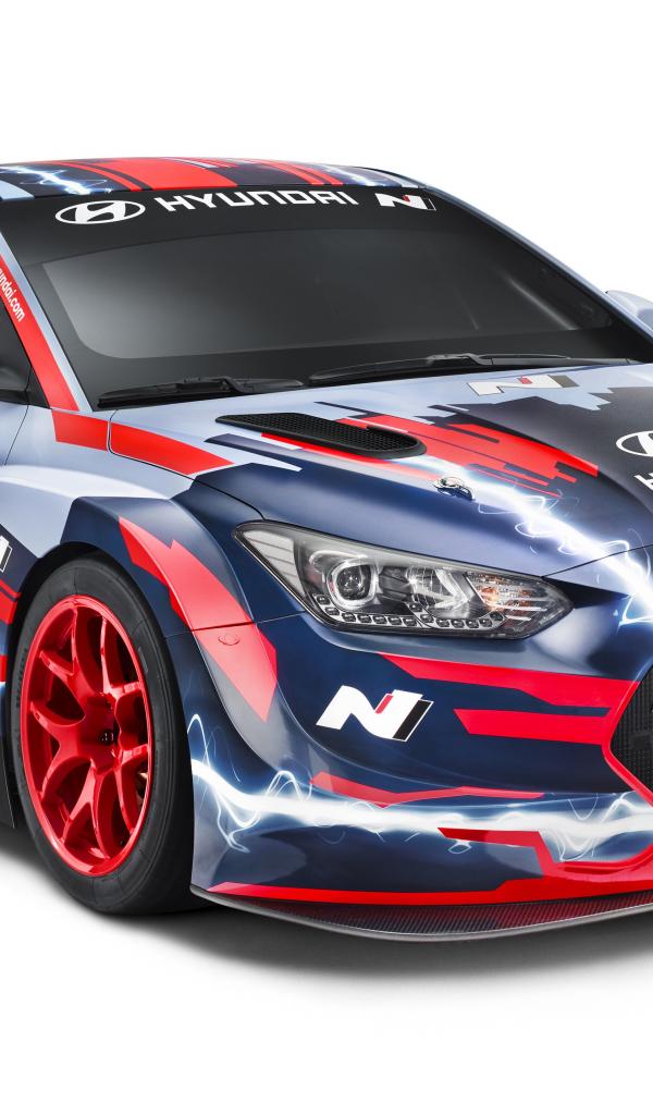 Wallpaper 2019 Hyundai Veloster N ETCR sports car on a white background