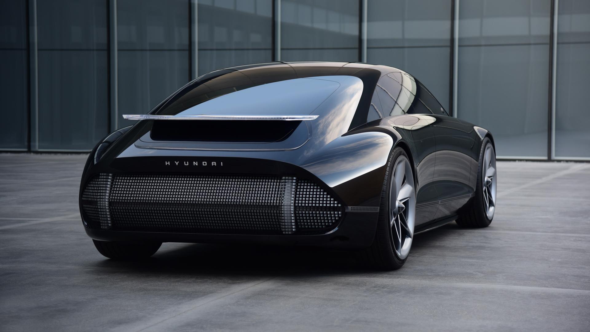 Wallpaper Black Hyundai Prophecy car, 2020 rear view on a gray background