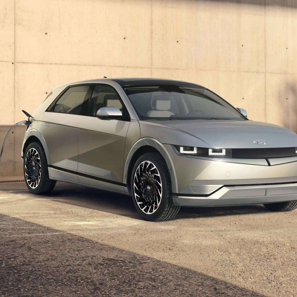 Wallpaper 2021 Hyundai IONIQ 5 electric car at a gas station