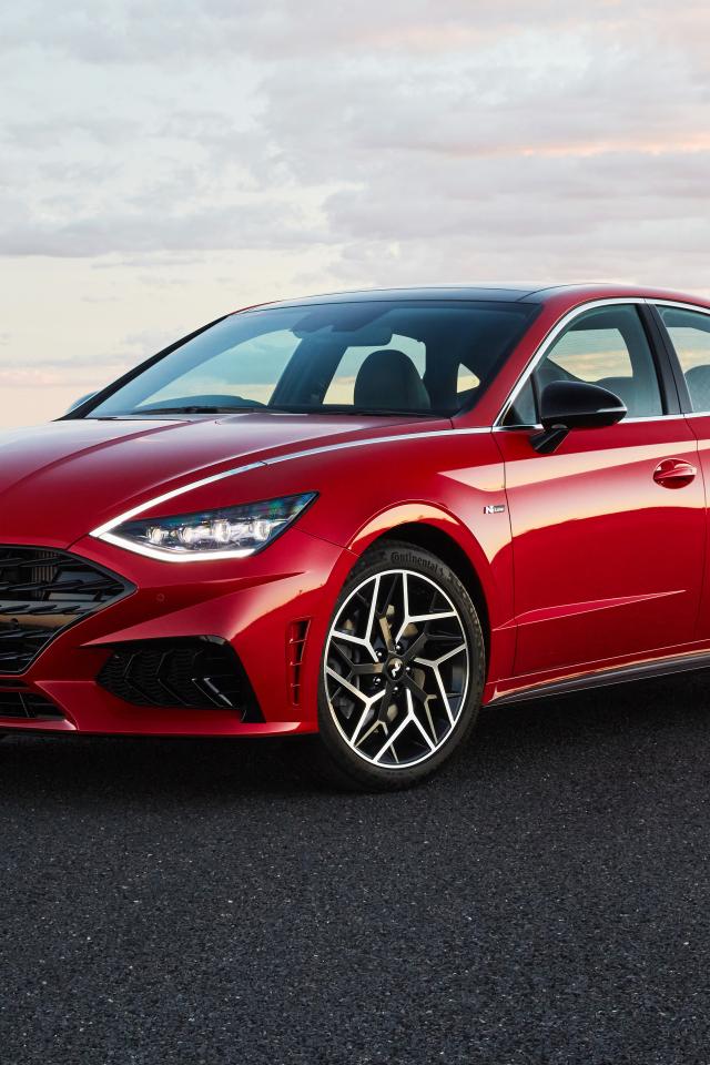 Wallpaper Red 2021 Hyundai Sonata N Line car on the road