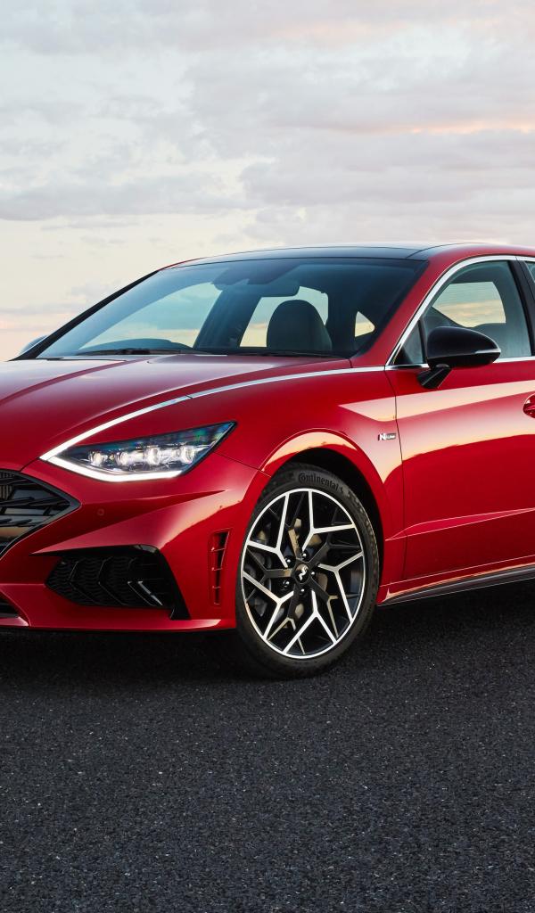 Wallpaper Red 2021 Hyundai Sonata N Line car on the road