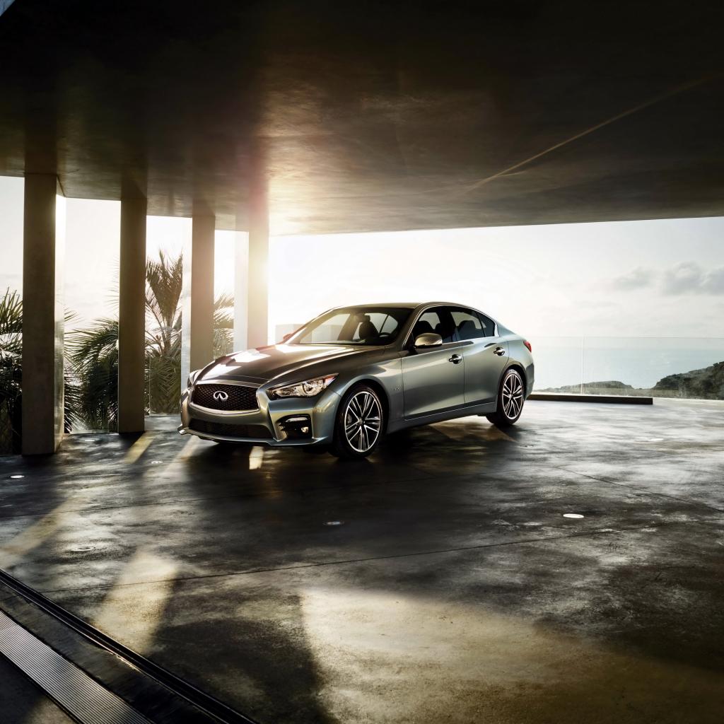 Wallpaper Silver car Infiniti Q50 in the sun