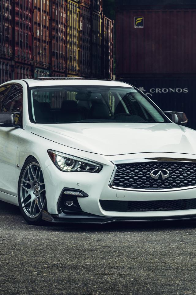 Wallpaper 2021 Infiniti Q50 white car in port