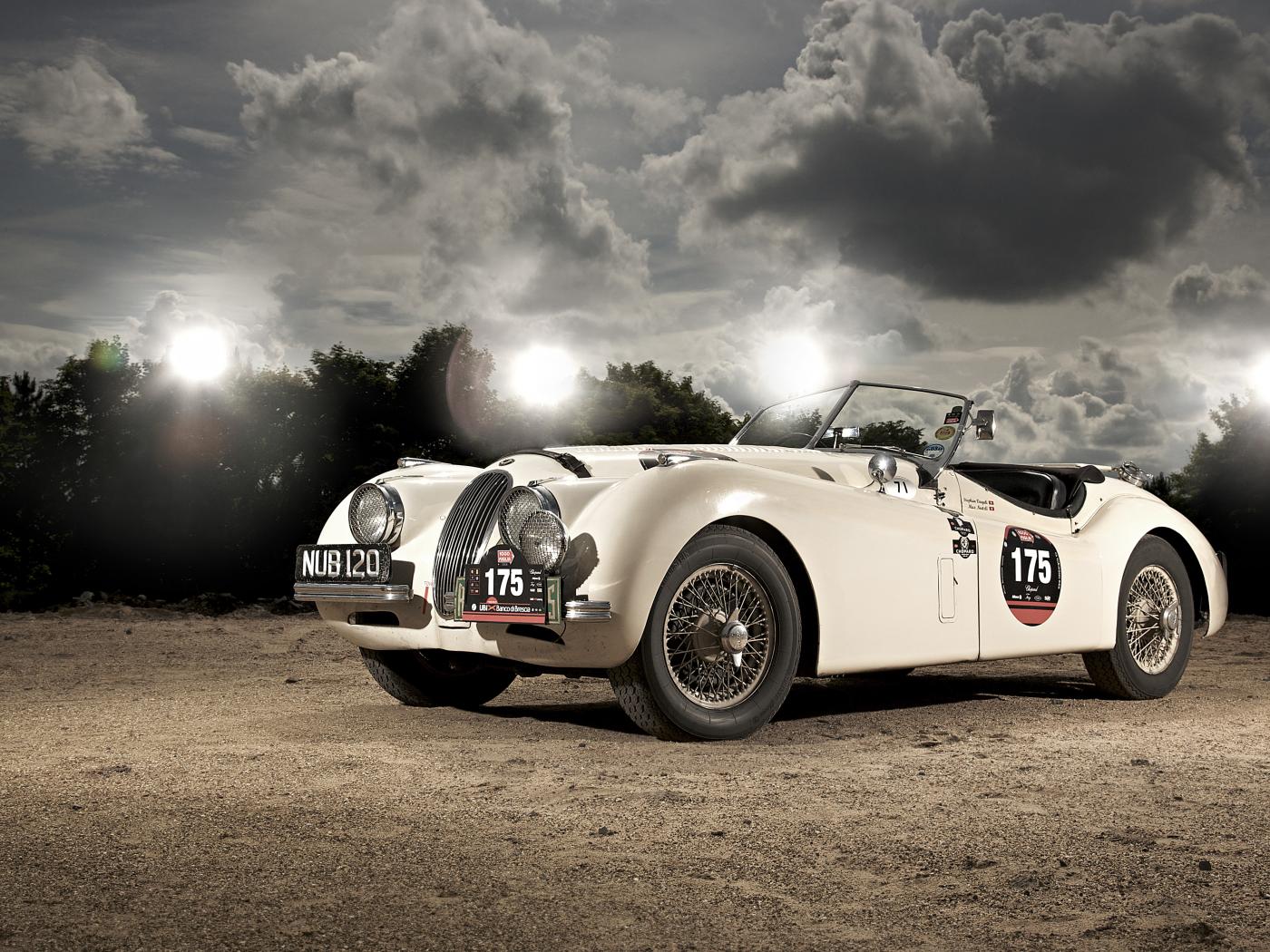Wallpaper White sports retro car Jaguar XK120, 1950