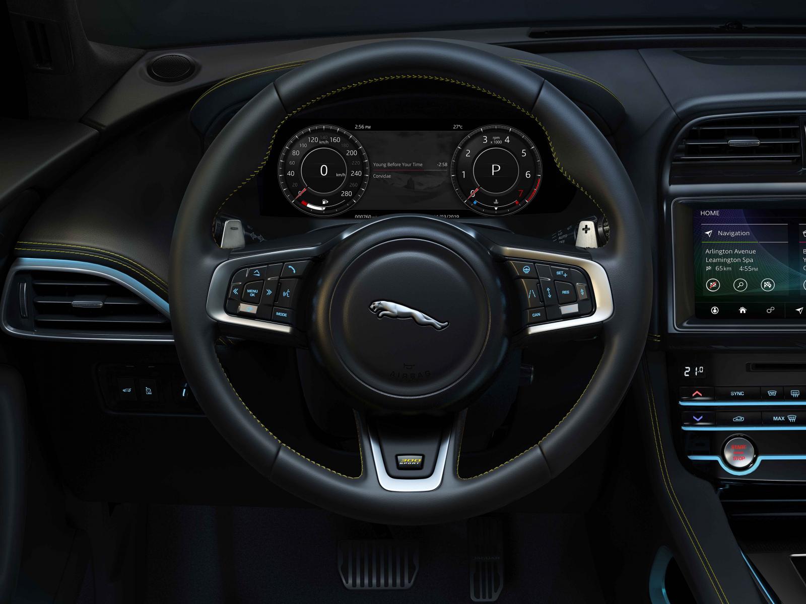 Wallpaper Leather steering wheel of a 2019 Jaguar F-Pace 300 Sport