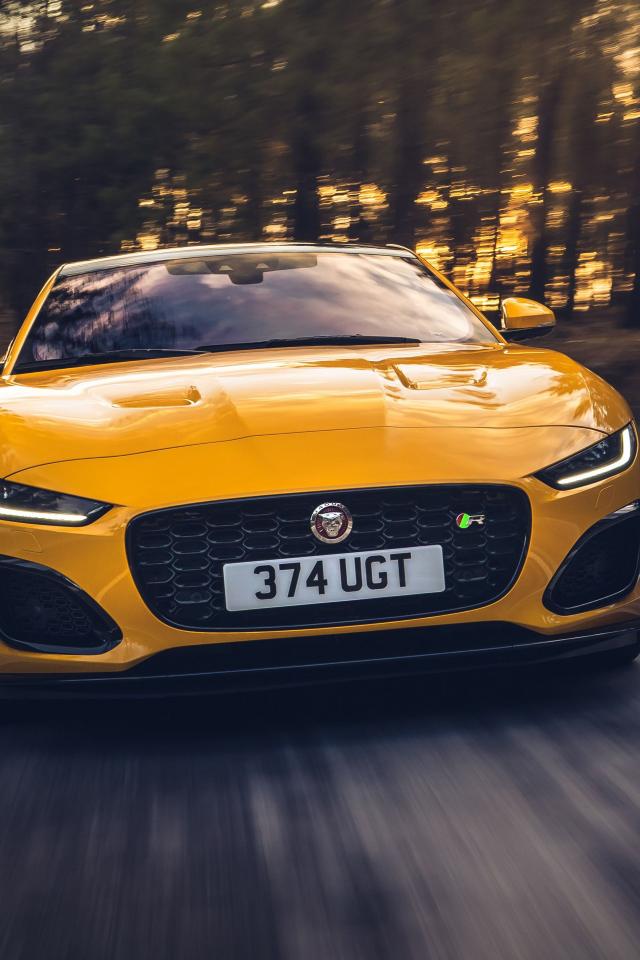 Wallpaper Yellow Jaguar F-Type R Coupe 2020 on track