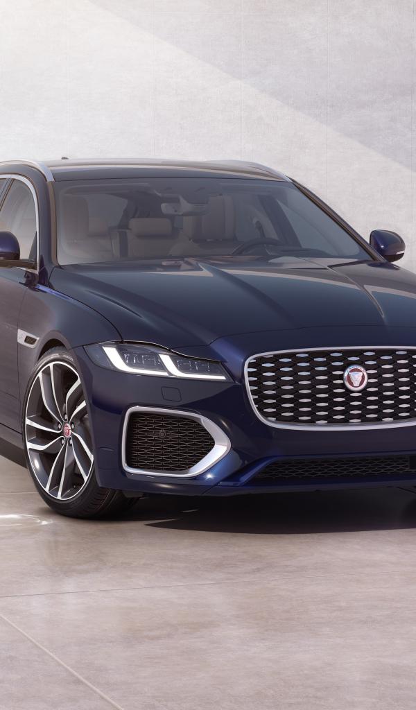 Wallpaper Blue 2020 Jaguar XF Sportbrake against a wall