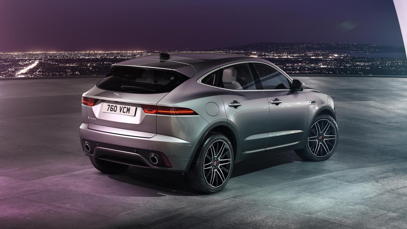 Wallpaper 2021 Silver Jaguar E-Pace R-Dynamic against the city at night