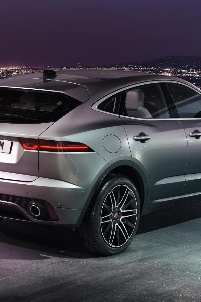 Wallpaper 2021 Silver Jaguar E-Pace R-Dynamic against the city at night