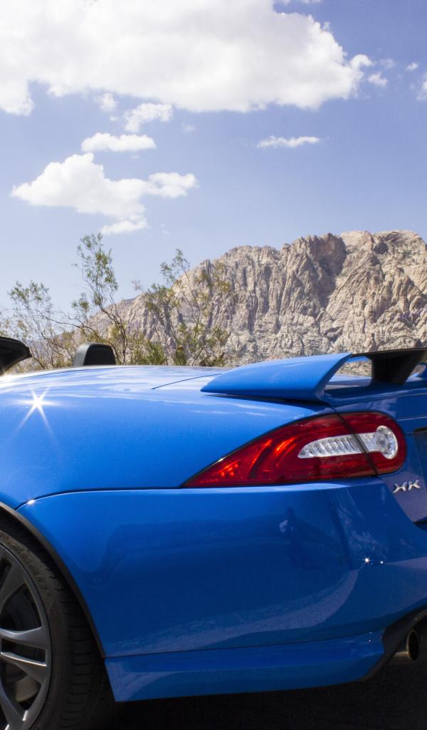 Wallpaper Blue convertible Jaguar mountains in the background