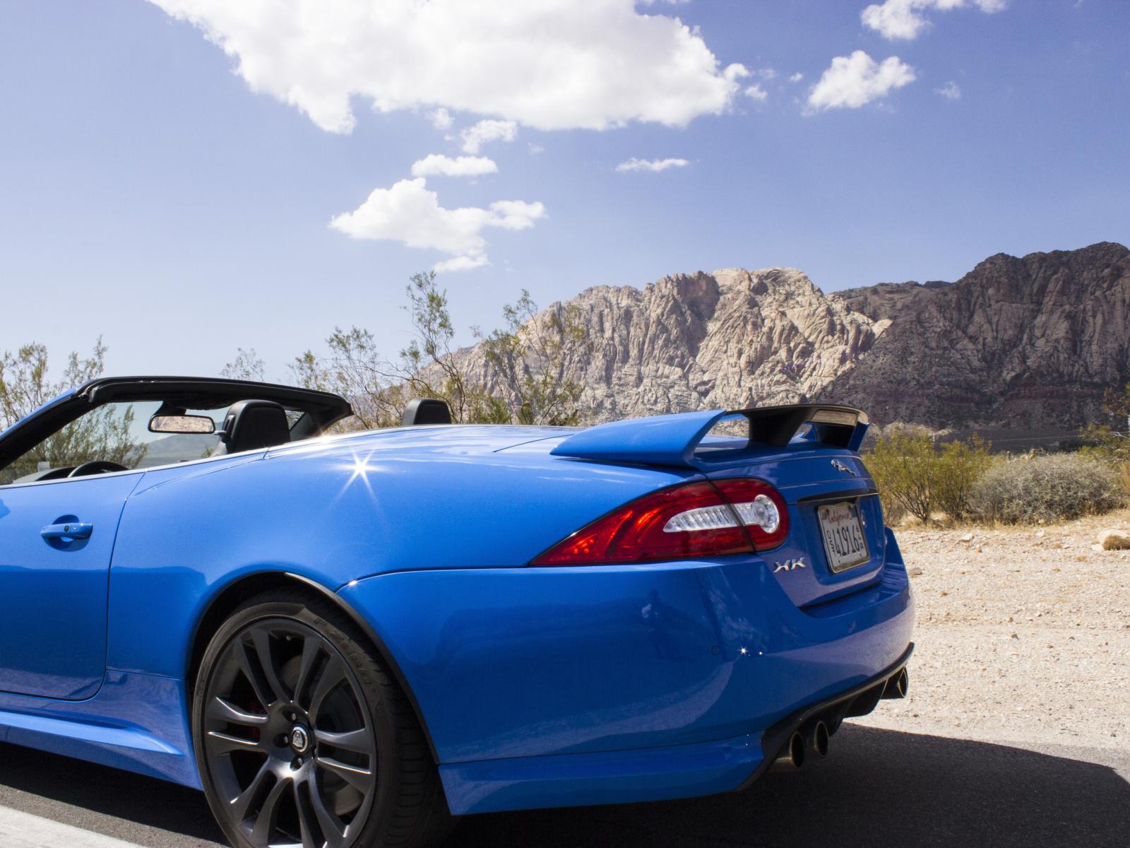 Wallpaper Blue convertible Jaguar mountains in the background