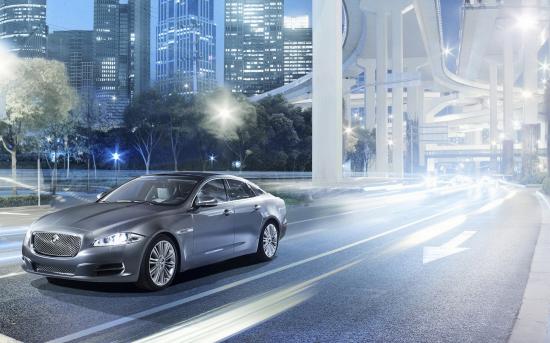 Wallpaper Jaguar XJ on street of the city