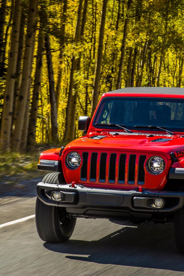 640x480600x1024Wallpaper Red car Jeep Wrangler Rubicon 2, 2018 on the forest road