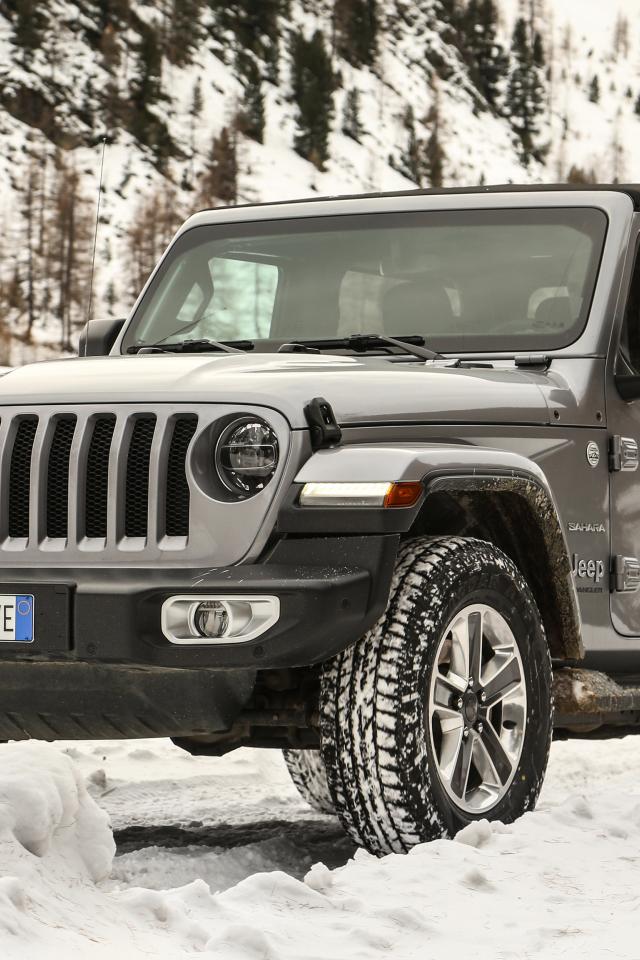 Wallpaper Black 2019 Jeep Wrangler Sahara on the snow