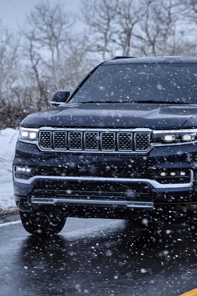 Wallpaper 2022 Jeep Grand Wagoneer Series III SUV on the road in winter
