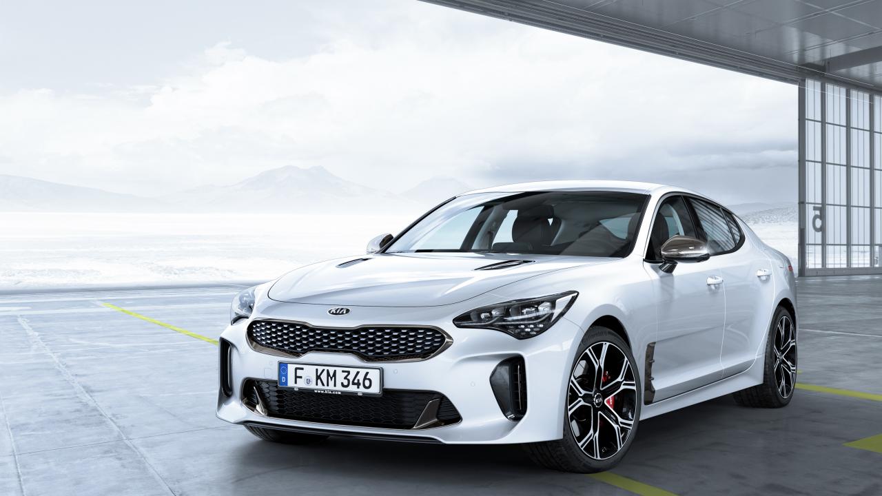 Wallpaper White Car Kia Stinger GT, 2017