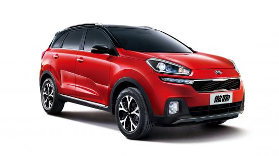 Wallpaper Red car crossover KIA KX3 on a white background
