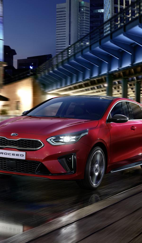 Wallpaper Red car 2018 Kia ProCeed GT Line on the track