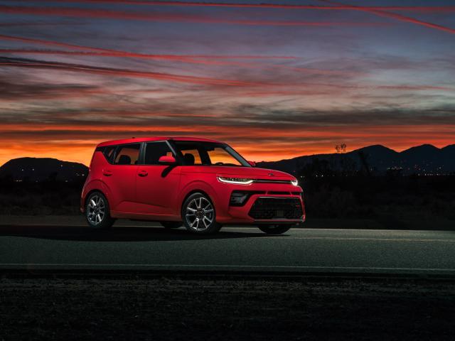 Wallpaper Red car Kia Soul GT-Line, 2020 against the night sky