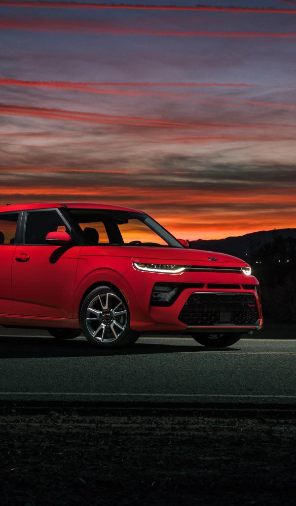 Wallpaper Red car Kia Soul GT-Line, 2020 against the night sky