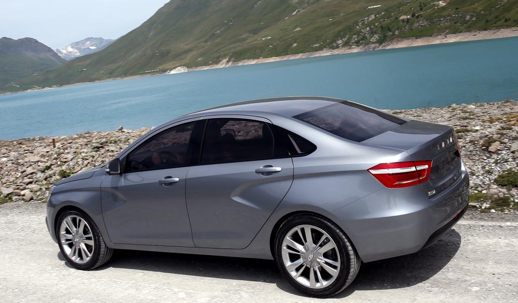 » Wallpaper Lada Vesta near the water