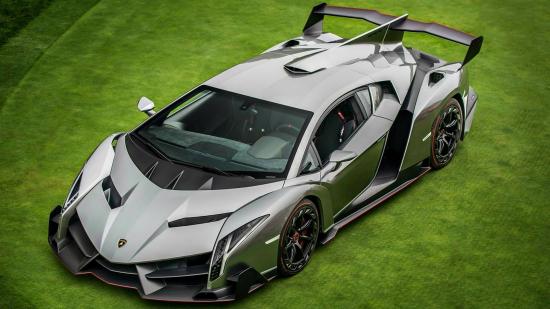 Wallpaper Silver sport car Lamborghini Veneno on a green lawn