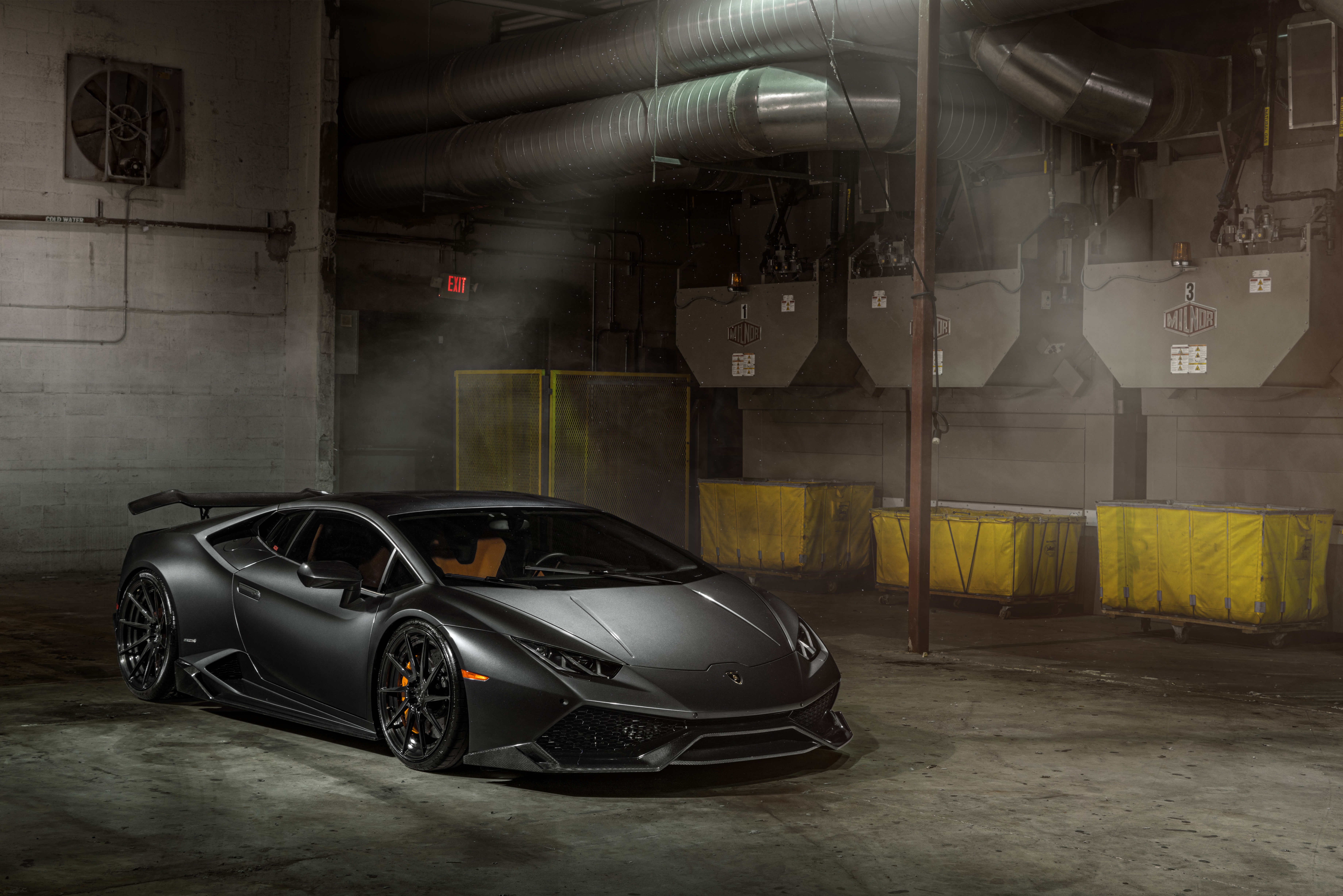 Wallpaper Silver fast car Lamborghini Huracan in the garage