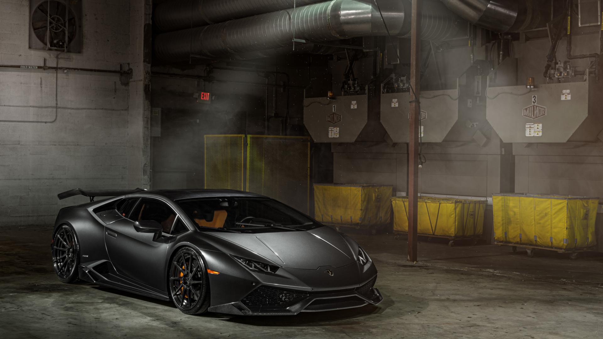 Wallpaper Silver fast car Lamborghini Huracan in the garage
