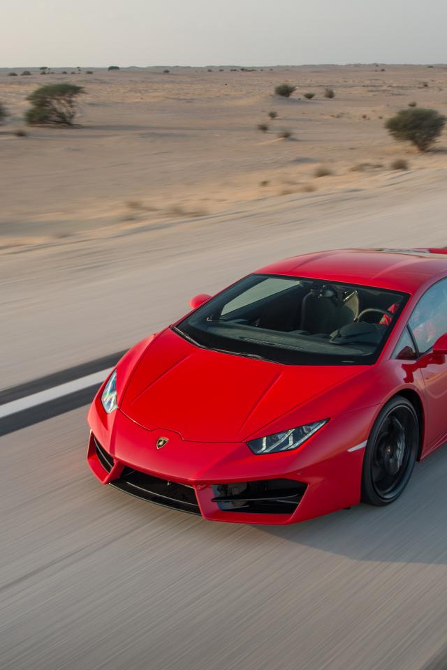 Wallpaper Red sports car Lamborghini Huracan, LP 580-2 on the road