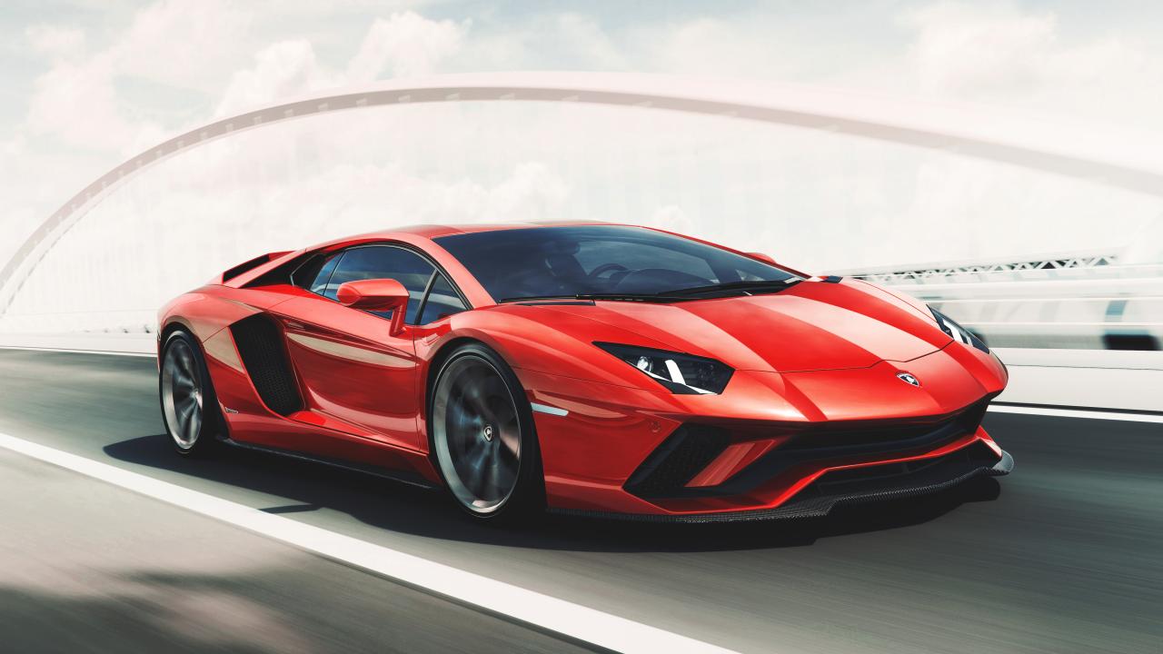 Wallpaper Red sports car Lamborghini Aventador